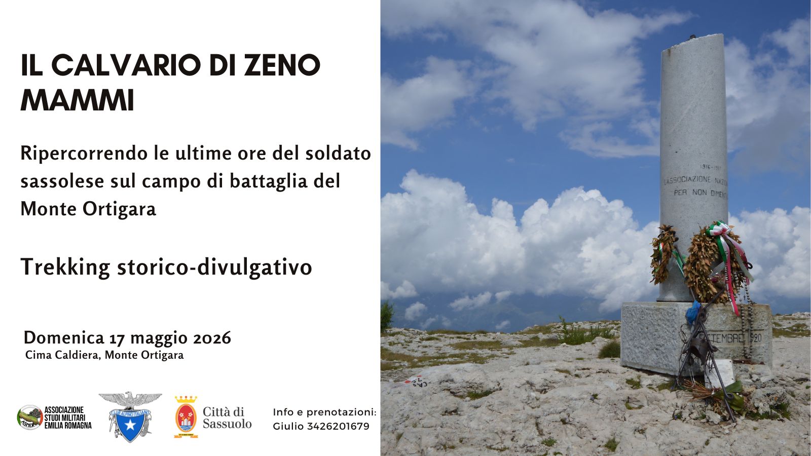 Trekking storico-divulgativo in collaborazione con l’Associazione Studi Militari Emilia Romagna e con il Comune di Sassuolo, ripercorrendo le ultime ore del soldato sassolese Zeno Mammi sul campo di battaglia del Monte Ortigara.